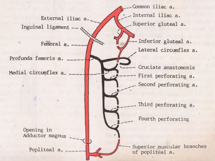 Profunda Femoris A n n Large vessel arising from lateral & back part of Femoral A, 2 -5 cm below inguinal ligament Ends at the lower ⅓ of thigh PFA provides an important source of collateral flow to the leg and foot in patients with significant SFA stenoses or occlusion Branches. — n n n Lateral Femoral Circumflex, Medial Femoral Circumflex, Perforating branches (4 no. s)