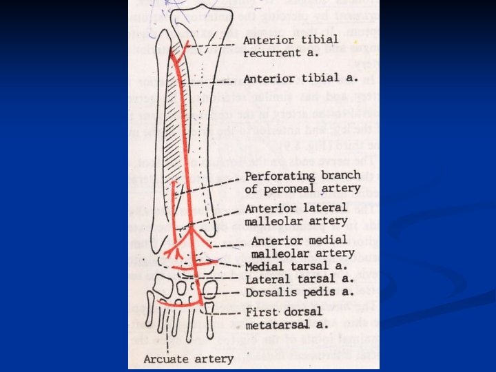 Foot arteries front view A. tibialis anterior A. dorsalis pedis