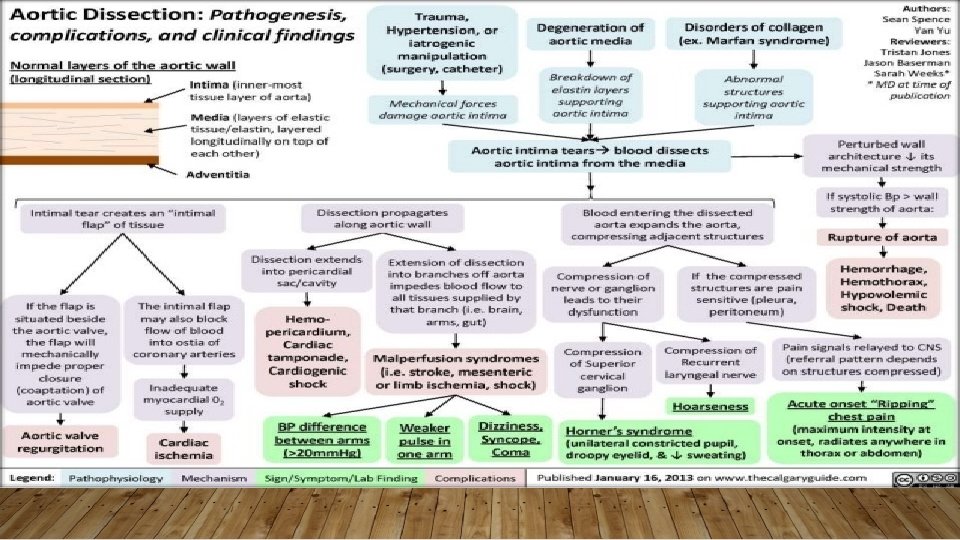 COMPLICATION 1) blood could continue in false tunnel until reach a branch of aorta compressing it: renal artery : decreased renal blood flow Subclavian artery: decreased flow to arms Carotid artery: cause neurological manifestations (hemiplegia, hemianesthesia) Coronary arteries: MI