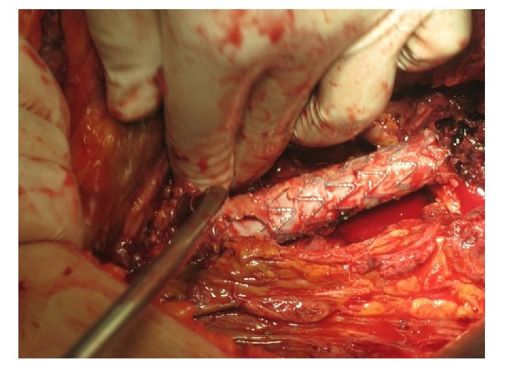 Review of the literature Clinical Outcomes in 102 pts EVAR- Surgical Repair Overall Mortality (17/60) 28. 3% • aorta ligation and extra anatomic BP (42) - Mortality (13/42) : 30. 9% • In situ reconstruction (18) - Mortality ( 4 /18) : 22. 2% TEVAR - Surgical Repair • Thor. aorta ligation and extra-anatom. BP (5) • In situ reconstruction (9) • Esophageal or bronchial repair (3) Overall Mortality (8/17) 47. 1%