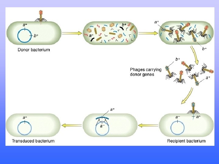 Transduction DNA transfer process where phages carry bacterial genes from 1 host to another. • How? – Random pieces of host chromosome are packaged within phage capsid. Host DNA gets injected into next bacterial cell the virus infects. http: //highered. mcgrawhill. com/sites/0072556781/student_view 0/ch apter 13/animation_quiz_2. html Generalized animation Specialized animation