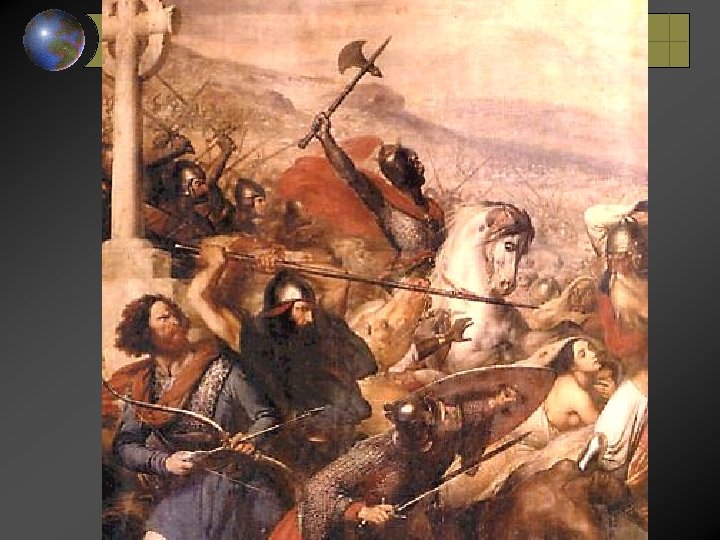 CHARLEMAGNE CHARLES MARTEL (HIS GRANDAD) DEFEATED THE MUSLIMS AT TOURS(POITIERS), ENDING ISLAM’S ADVANCE IN EUROPE HIS DYNASTY IS THE CAROLINGIANS CHARLEMAGNE MEANS ‘CHARLES THE GREAT’ HIS DAD WAS PEPIN THE SHORT, SON PIPPIN THE HUNCHBACK…