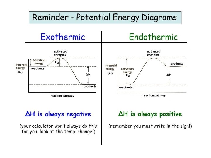 Thermochemical Equations H 2 O (s) H 2 O (l) ΔH = 6. 01 k. J/mol ΔH = 6. 01 k. J If you reverse a reaction, the sign of ΔH changes H 2 O (l) H 2 O (s) ΔH =- 6. 01 k. J If you multiply both sides of the equation by a factor n, then ΔH must change by the same factor n. 2 H 2 O (s) 2 H 2 O (l) ΔH = 2 mol x 6. 01 k. J/mol = 12. 0 k. J