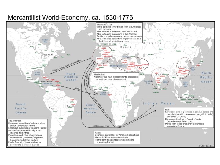 Mercantilism: 17 th-18 th C. • • • The dominant economic and political doctrine among the Western European maritime powers (the Atlantic Five) – Required merchant marine and navy Age of Exploration: Implementation of the Triangular Trade Gold and silver mined and shipped as bullion to Europe where it was minted into coin and circulated in European markets The merchant fleets were privately-owned, joint-stock trading companies sanctioned by the governments – Increased demand for Asian market goods and gun-boat diplomacy – Profit reinvested in overseas ventures AND in agricultural and (later in England) industrial technologies Post-Industrial Revolution, capitalism replaced mercantilism as the dominant economic trend