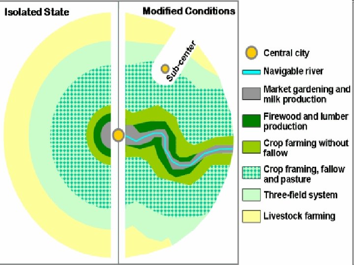Von Thunen n n Agricultural land use model Assumptions n n n All areas are equally fertile No intervening physical environment All areas around the world are similar Uses BID RENT (OR LAND RENT) to figure out how much land will cost by calculating market value of good, cost of transportation to market, and production costs This can determine how much land will cost in each ring based on the each of the stated costs Milkshed – area surrounding the CBD or market area where milk can be produced (anywhere outside the ring milk will go bad due to travel times)