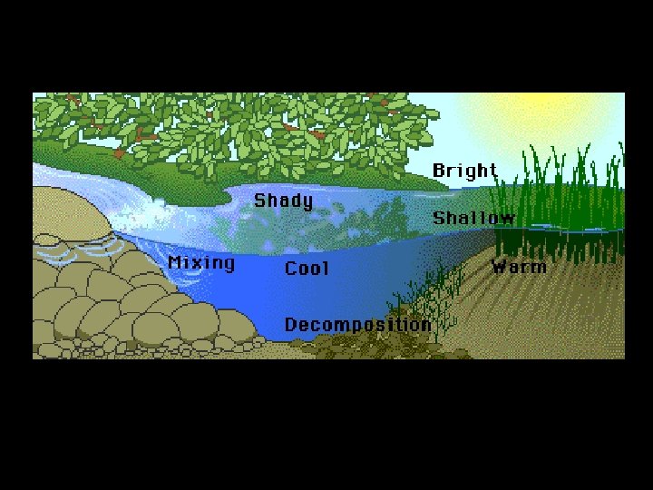 Dissolved Oxygen Availability • Oxygen is needed for…. . – Cellular respiration • Factors that affect oxygen in water – Temperature • Colder holds more oxygen – Photosynthetic activity • More light, more oxygen – Decomposition activity • As organic material decays, microbial processes consume oxygen – Mixing and turbulence: • Wave action, waterfalls, and rapids increase the oxygen – Salinity • More salty, ability to hold oxygen decreases