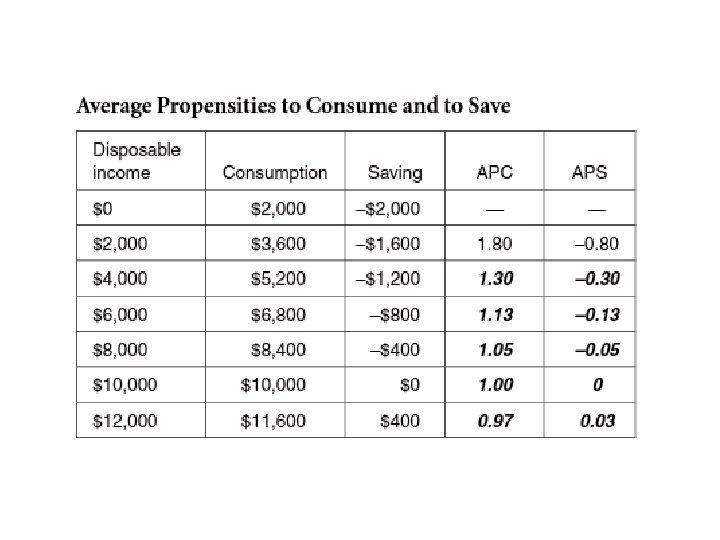 APC + APS = 1 C + S = DI S/DI Average propensity to save (APS) C/DI Average propensity to consume (APC)