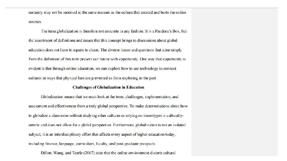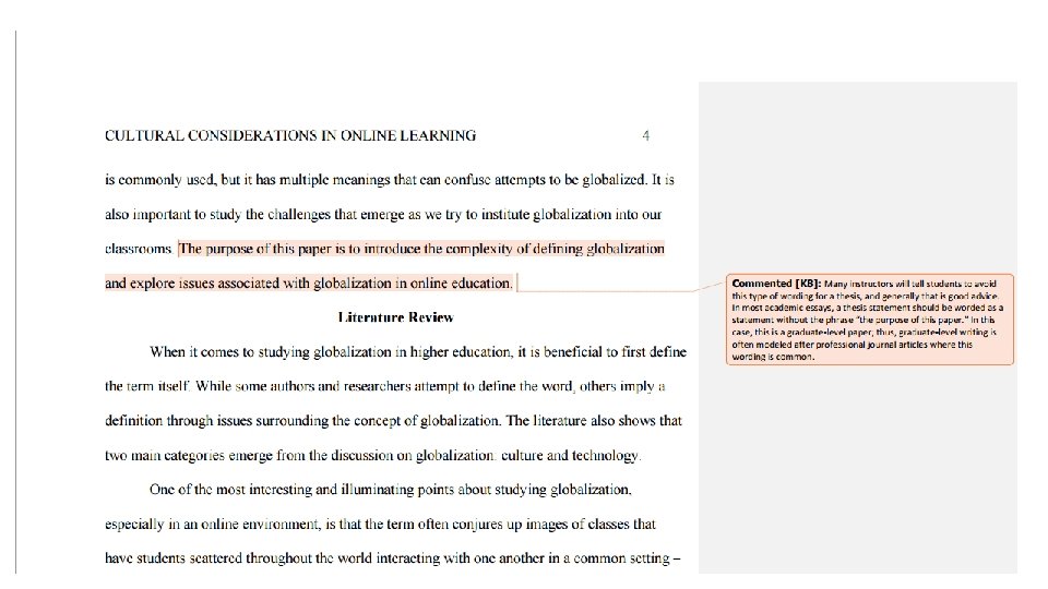 In-text citations • You are required to use quotes in your essay • DO NOT float your quotes • You must introduce the quote with a signal phrase • All quotes must be explained • Use them as proof to support your thesis • Think like a lawyer: Explain what the quote illustrates about the point you are making!