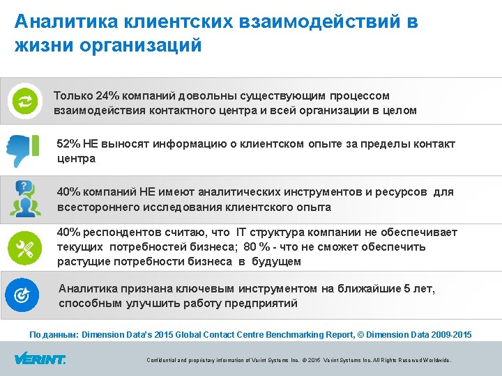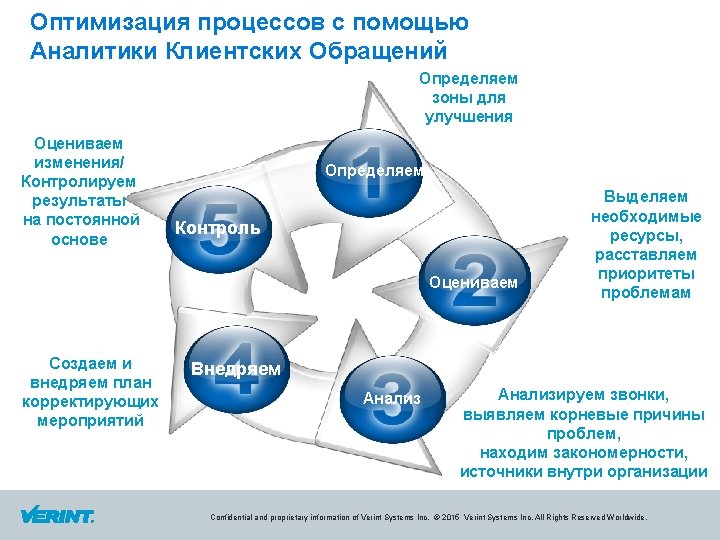 Модель оптимизации процессов предприятия Confidential and proprietary information of Verint Systems Inc. © 2015 Verint Systems Inc. All Rights Reserved Worldwide.