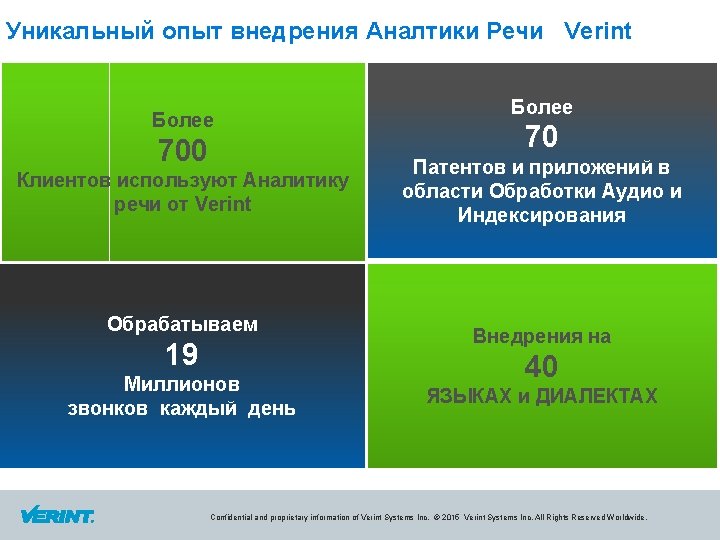 Не просите меня, повторяться Confidential and proprietary information of Verint Systems Inc. © 2015 Verint Systems Inc. All Rights Reserved Worldwide.