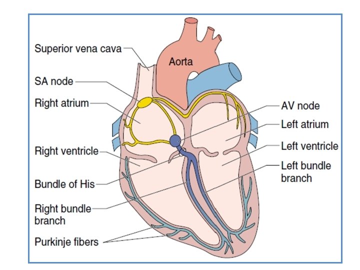 Nódulo sinoauricular (S-A) o sinusal (marcapaso) Nódulo auriculoventricular (A-V) Haz auriculoventricular de His Rama derecha y rama izquierda Fibras de Purkinje
