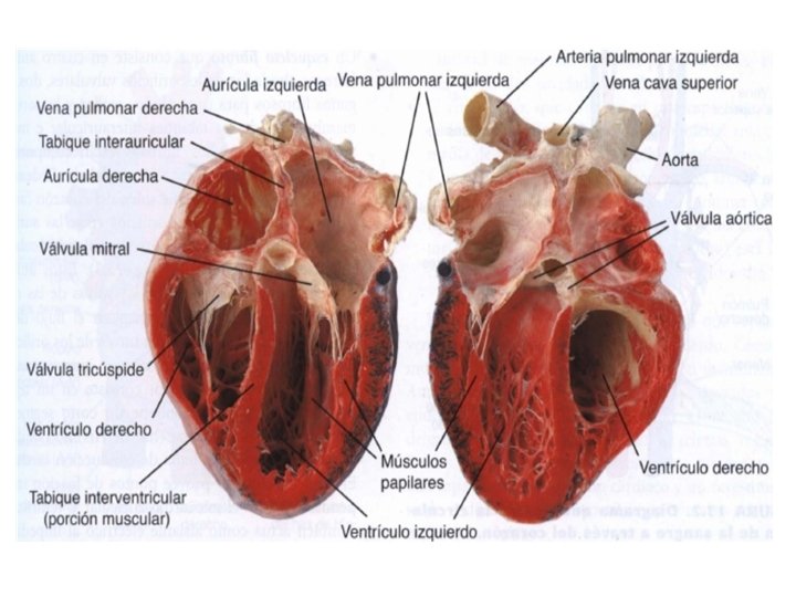 Las paredes del corazón contienen: • Una musculatura de músculo estriado cardíaco cuya contracción impulsa la sangre. • Un esqueleto fibroso: cuatro anillos fibrosos (de TC denso) alrededor de los orificios valvulares y la porción membranosa de los tabiques interauricular e interventricular.