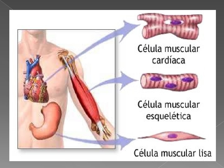 MÚSCULOS VISCERALES, INVOLUNTARIOS O LISOS Ø Están compuestos de células estrechas y alargadas y de apariencia lisa. Ø Se caracterizan por su acción involuntaria que es activada por el sistema nervioso. Ø Pueden permanecer contraídos durante más tiempo que los voluntarios, porque no se agotan fácilmente. Ø Se localizan en los órganos internos y en los grandes vasos sanguíneos. Las paredes del estómago y de los intestinos son ejemplos de estos músculos, ya que permiten descomponer los alimentos y moverlos a través del sistema digestivo