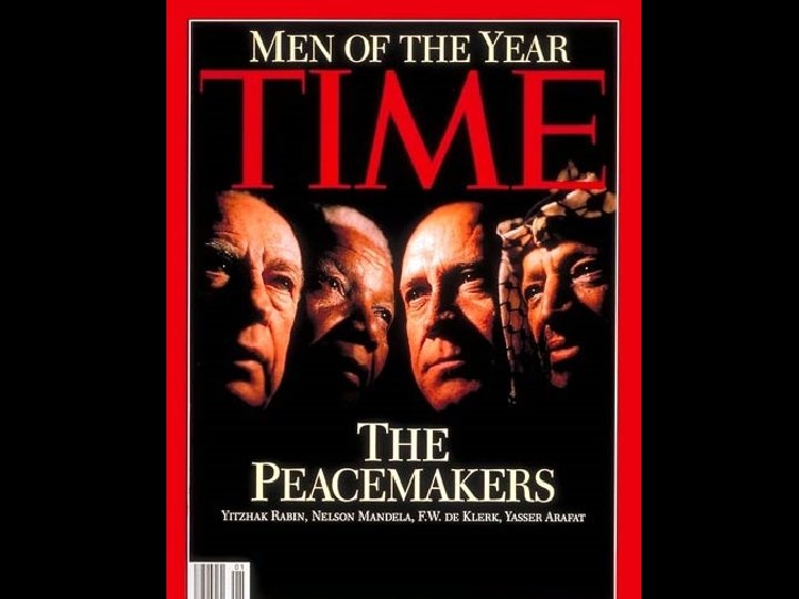 Mandela & de Klerk win the Nobel Peace Prize in 1993 for their role in the ending of apartheid