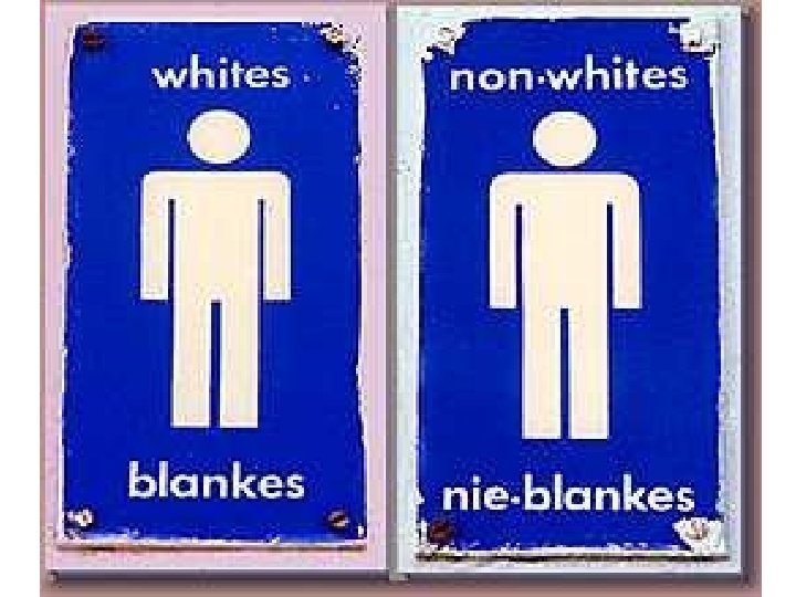 APARTHEID u u u Apartheid = “separateness” A policy or system of segregation or discrimination based on race with laws to enforce the segregation (separation) of the races in South Africa early 1900 s - 1994 It was created because: whites wanted to maintain their power they had enjoyed since colonial times; racism; thought blacks were inferior