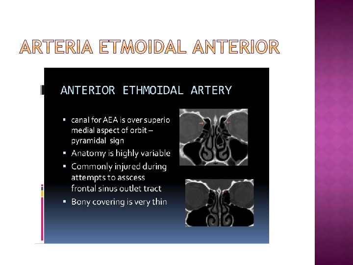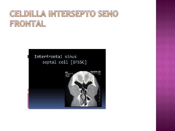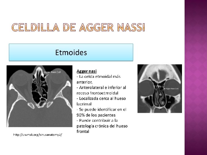 � Celdillas frontoetmoidales �En relación con receso frontal, suelen obstruir drenaje seno frontal. �.