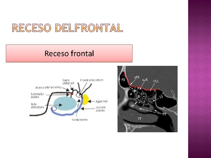 � Receso � Paso frontal en forma de reloj de arena entre el seno frontal y las celdillas etmoidales anteriores.