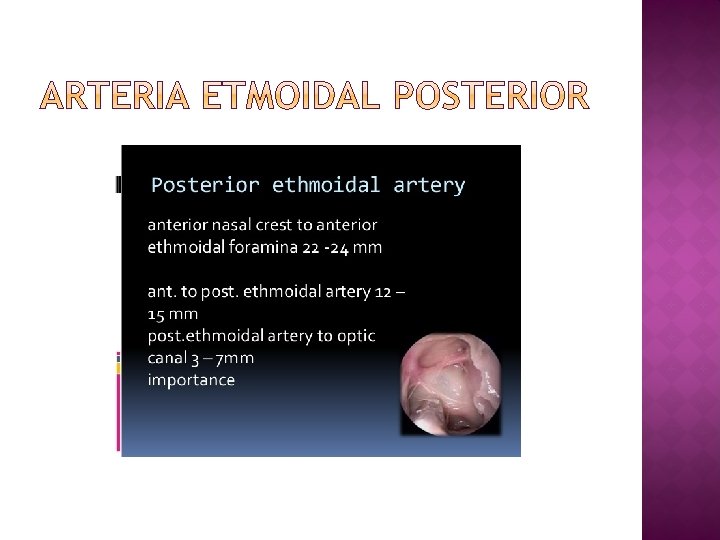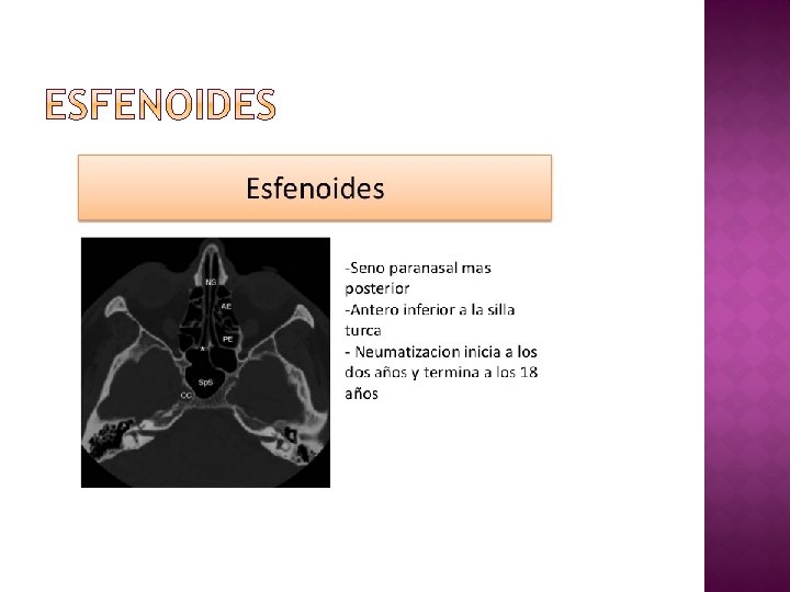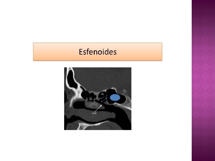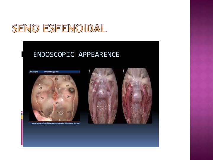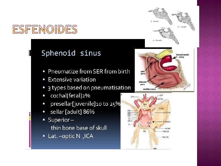 � Orificio seno esfenoidal �Redondo > elíptico. �Diámetro: 2, 4 mm