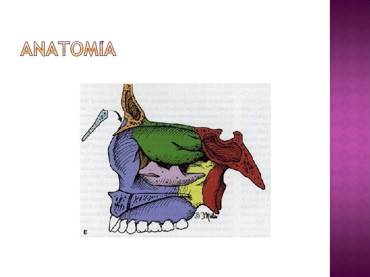 � Celdillas �Diversos de la eminencia nasal grados de neumatización. �Pueden obstaculizar el drenaje y ventilación de los senos frontales. �Medial al conducto lacrimal.