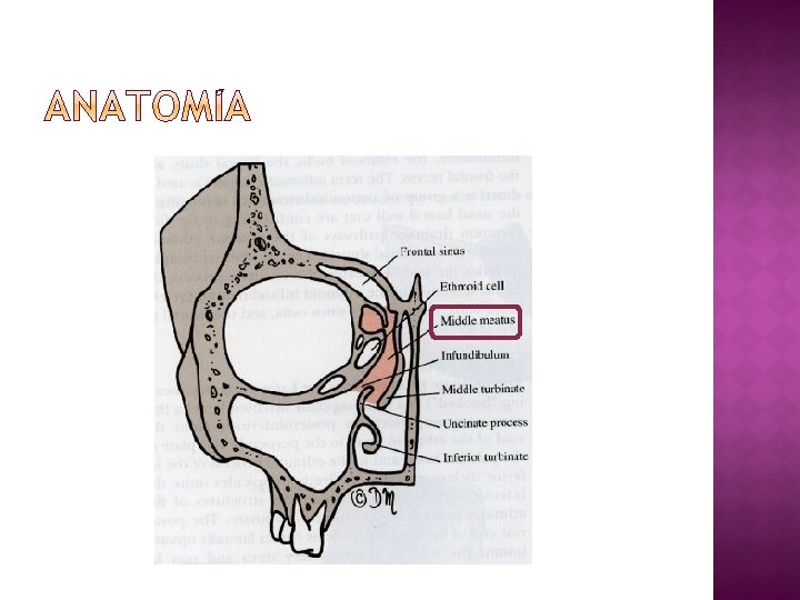 � Apófisis unciforme �Medializada �“Cornete medio doble” �Neumatizada