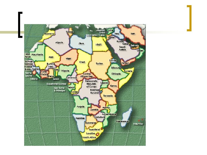 Shape of States n n n Perforated - A state that completely surrounds a territory that it does not rule. That area is called an “enclave” and it may be independent or part of another state. An area outside of the state’s borders that belongs to the state is called an “exclave”. (Ex: Alaska) Example: Italy or South Africa