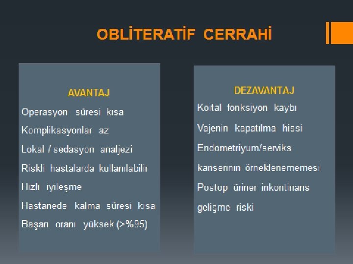 VAJİNAL CERRAHİNİN AVANTAJLARI l Kısa operasyon süresi l Daha az yara yeri komplikasyonları l Daha az postoperatif ağrı l Daha kısa hastanede kalış süresi