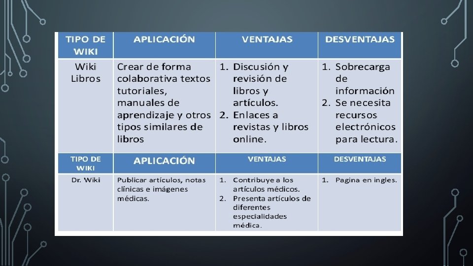 VENTAJAS DESVENTAJAS • • Esta en español • • • Es editable PUEDA EXISTIR: Aumentan el interés de los alumnos, • equipos de trabajo poco integrados, falta de coordinación, exclusión de participantes, mala planeación por parte del instructor, etc. • • • Cada actividad debe ser cuidadosamente planeada. Es una pagina de código abierto Cualquier usuario puede ingresar y modificar el contenido Promueve la comunicación, Promueve la coordinación, Promueve y favorece la interacción, • • Mejora el logro académico, • Fuerza a los estudiantes a ser más explícitos con otros en sus: Intenciones, Metas, Planes y Entendimiento de la tarea Estimula el uso del lenguaje, Promueve el uso de la narrativa (historia) Riesgo en primeras experiencias. Si los participantes (tanto alumnos como maestros) no han tenido experiencias previas de aprendizaje colaborativo, las primeras prácticas de AC con las que se encuentren, les pueden resultar difíciles, Riesgo de una percepción de informalidad. Dependencia de la infraestructura computacional, siempre debe estar conectado al internet