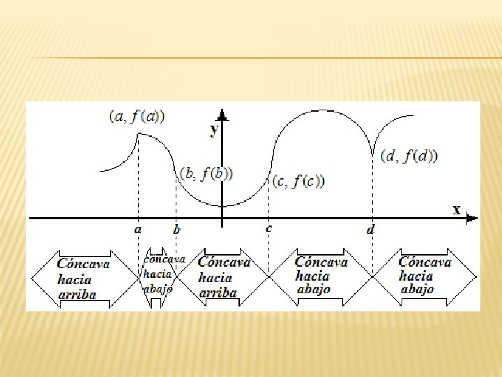 CRITERIO DE LA SEGUNDA DERIVADA Supongamos que f '(c) = 0 y también que f ''(x) existe en todo x en el dominio de la función f. � Si f ''(c) < 0, entonces f tiene un máximo relativo en x = c. � Si f ''(c) > 0, entonces f tiene un mínimo relativo en x = c.