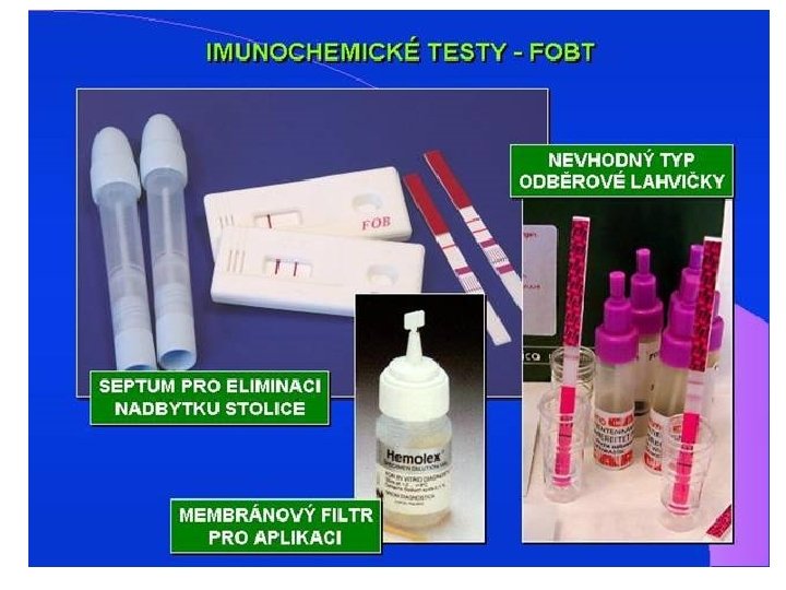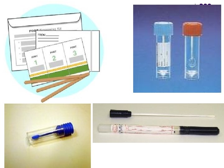 Odběr stolice l Širokohrdlá nádobka s lopatkou l Štětička s kultivačním médiem l Podložní sklíčko s izolepou l Set na hemokult