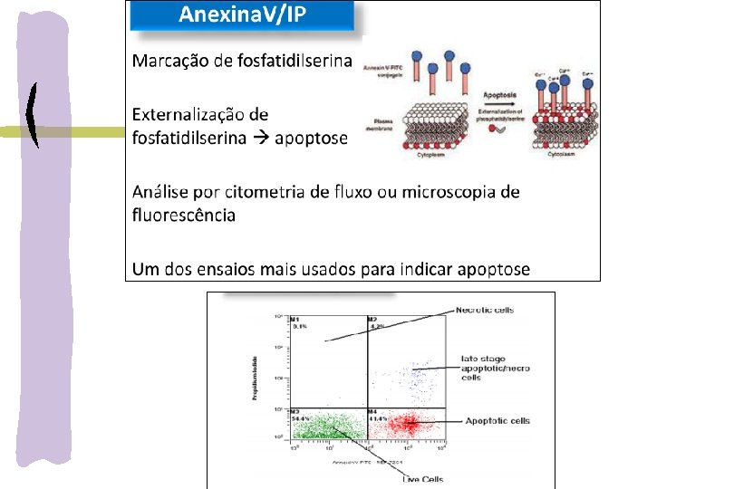 VIAS APOPTÓTICAS Via extrínseca – ligação dos receptores de morte: Fas/CD 95/Apo-1, TNFR e TRAIL: expressos em timócitos, células B ativas, células T, monócitos, macrófagos e neutrófilos -estímulo externo ( radiação, drogas, inflamação) ligação com ligantes específicos aos receptores de Morte: Fas. L/Fas; TNF- /TNFR) DISC (complexo de sinal indutor de morte) Fasl/Fas + FADD + procaspase 8 ativada cascata de caspases Via intrínseca-Mitocondrial: estímulo interno: ROS, NO, citocinas, deprivação fator crescimento, Ca 2, ativação oncogene ativação Bax, Bid translocação do citosol p/ membrana mitocondrial liberação do citocromo c formação do apoptossomo clivagem da procaspase-9 ativa cascata de caspases clivagem da caspase-3 ativa fator de fragmentação do DNA quebra do DNA a cada 200 pb