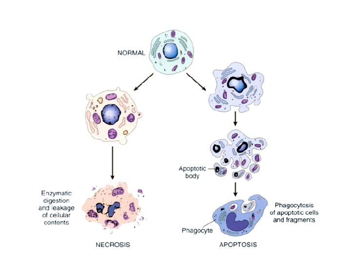 Necrosis vs Apoptosis • In contrast to necrosis, which is a form of traumatic cell death that results from acute cellular injury, . Unlike necrosis, apoptosis produces cell fragments called apoptotic bodies that phagocytic cells are able to engulf and quickly remove before the contents of the cell can spill out onto surrounding cells and cause damage.