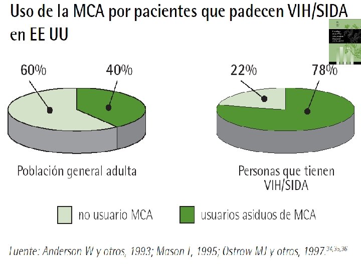 Medicina Complementaria l l Un estudio nacional realizado en EE UU demostró que la mayoría de los usuarios de la MCA no percibían la MCA como “alternativa” a la medicina alopática sino como “complementaria”. Un estudio reciente ha demostrado que el 78% de los pacientes que padecen VIH/SIDA en EE UU utilizan alguna forma de MCA.