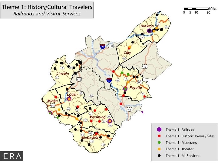 Theme 1: History / Cultural Attractions • Historic Towns / Sites (60) • Theater (11) • Museums (10) • Railroads (10) • Civil War / Military History (8) • Native American (7) • Music (5) • Hatfields & Mc. Coys (4) • Bridges of Interest (3) • Historic Churches (1) • Courthouse (1)