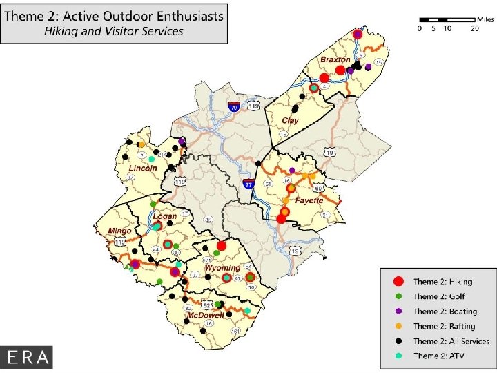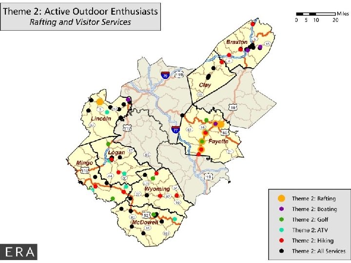 Theme 2: Active Outdoor Activities • Hiking (19) • ATV / Motorsports (14) • Golfing (13) • Boating (9) • Rafting (9) • Historic Churches (9) • Biking (6) • Skiing (1)