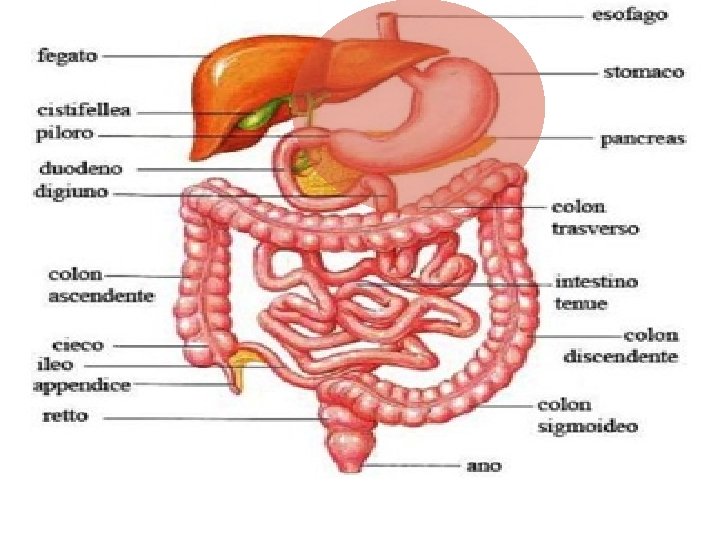 L’INTESTINO Il duodeno è il primo tratto dell’ intestino tenue lungo circa sette metri al duodeno seguono un secondo tratto detto digiuno e un terzo l’ileo che comunica con il primo tratto dell’ intestino crasso. collegato all’ileo L’intestino ceco èe presenta una piccola protuberanza detta appendice che a volte si infiamma , al cieco segue il colon e si divide in colon ascendente , traverso e discernete il retto è la parte terminale dell’intestino crasso e comunica verso l’ano.