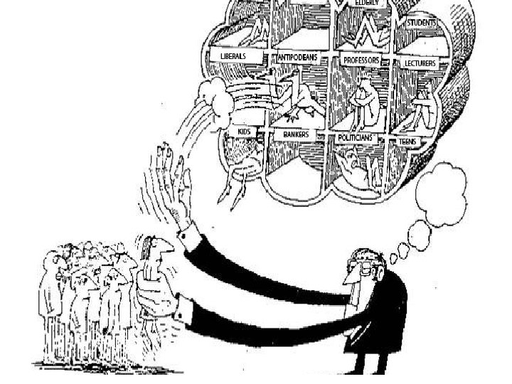 a) Stereotyping • Humans have an innate tendency to categorise others on the basis of external characteristics • Stereotypic judgements are made on the basis of which characteristics are socially valued, desired & acceptable • These judgements are influenced by cultural and religious beliefs and by social norms