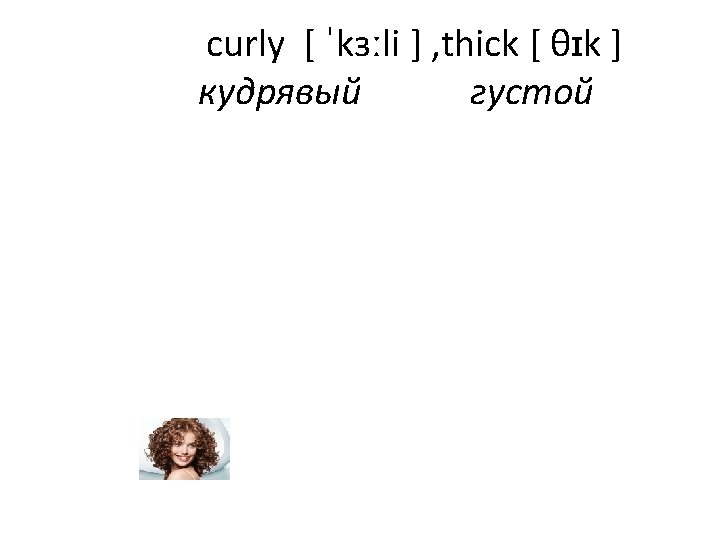 fair [ feə(r) ] / blond [ blɒnd ], straight, thin[ θɪn ] тонкий