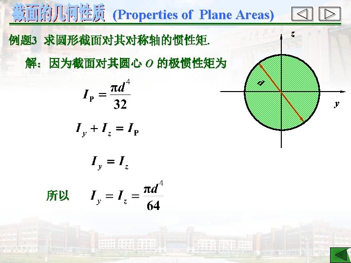 (Properties of Plane Areas) z z. C 2 d d O C 所以 便是形心主轴 便是形心主惯性轴 y y. C b