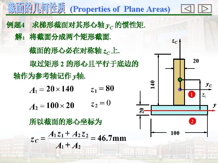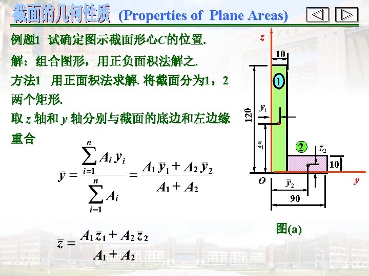 (Properties of Plane Areas) z 矩形 1 10 矩形 2 120 1 2 10 y O 所以 90