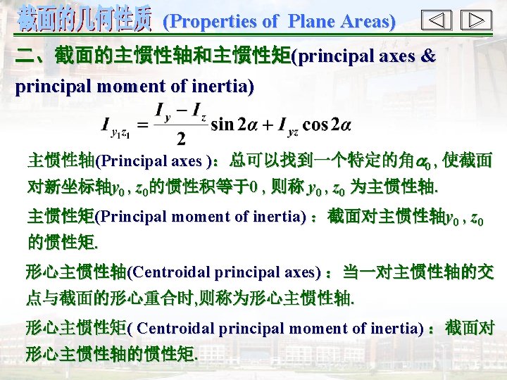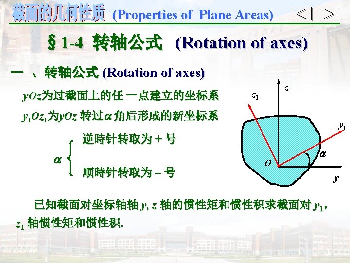 (Properties of Plane Areas) 转轴公式为 z z 1 y 1 O y 显然