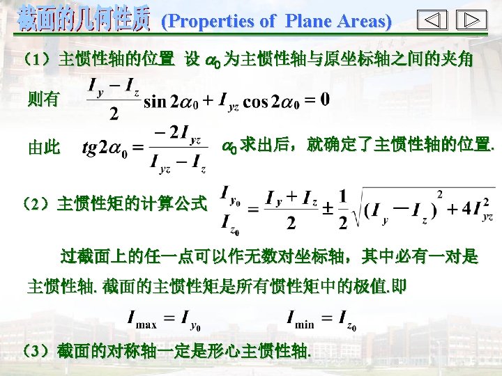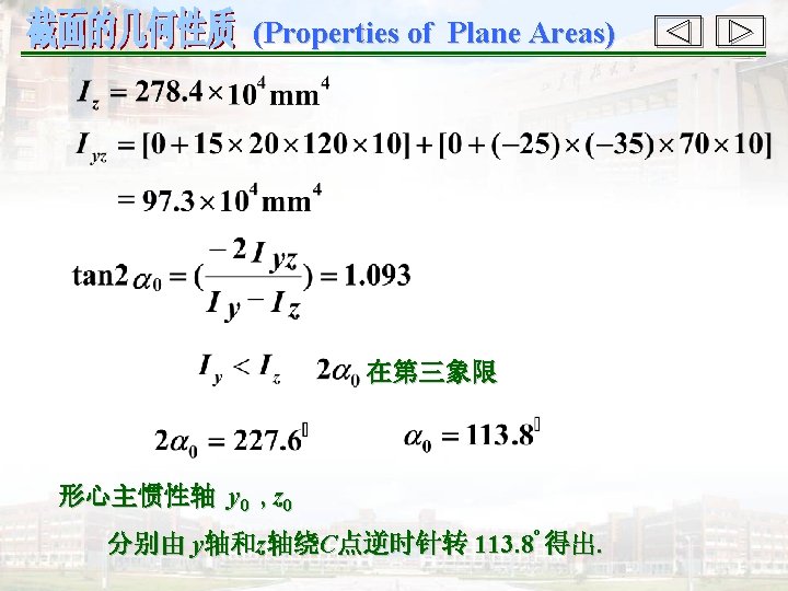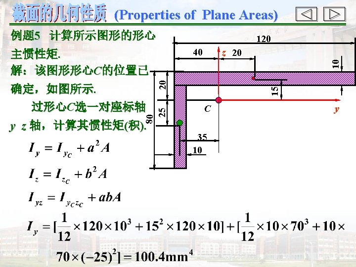 (Properties of Plane Areas) y 0 40 z 120 20 10 0=113. 8° 70 C z 0 形心主惯形矩为 10 y