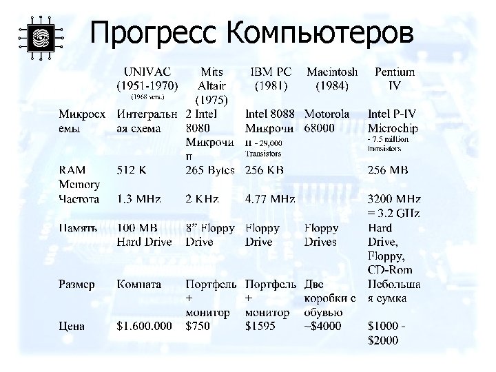 Early Computer History • Microprocessor chip 1971 – Created by Intel Corporation – A small chip containing millions of transistors – It functions as the central processing unit (CPU)