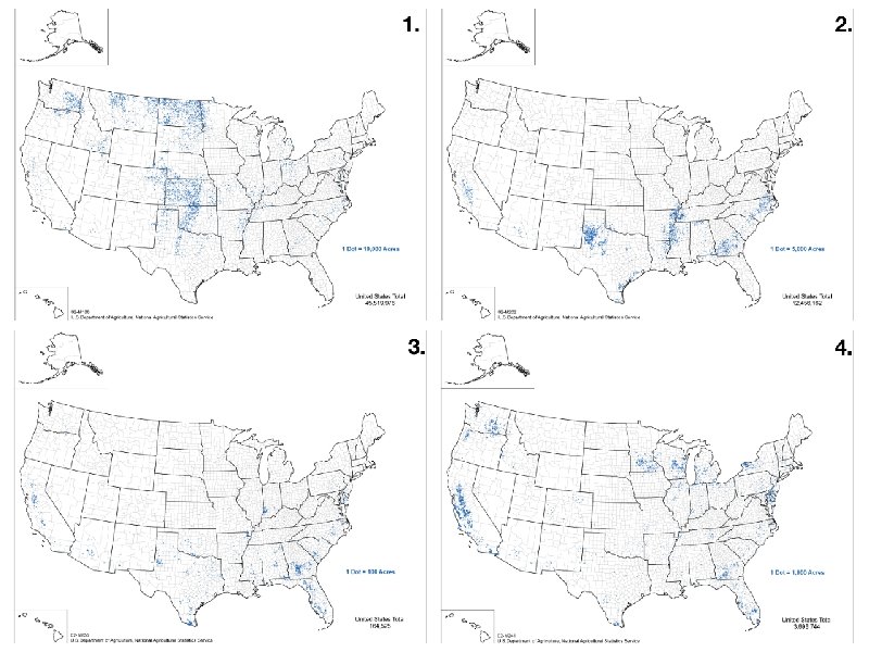 apples canola cattle corn cotton grapes hogs & pigs milk cows peanuts potatoes rice sheep & lambs soybeans sugar beets sunflowers tomatoes vegetables watermelons wheat 2. Source: www. usda. gov/research/atlast 02/index. html
