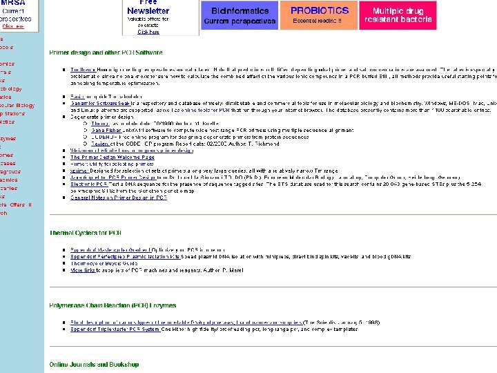 PCR primer selection n n n Primer Length Melting Temperature (Tm) Specificity Complementary Primer Sequences G/C content and Polypyrimidine (T, C) or polypurine (A, G) stretches 3’-end Sequence