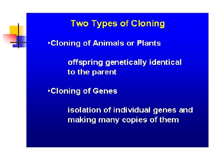 Molecular Cloning In order to have enough DNA to work with for a single gene or sequence, you must have a way to “clone”, or reproduce many exact copies of that gene. This is called “molecular cloning” Gene of interest