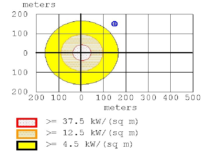 Consequence Analysis Scenario: Jet Fire Scenario of Natural Gas while being transported through underground pipeline Pipe Diameter: 20 inches Pipe Length: 10 Km Pipe Press: 500 psia Pipe Temperature: 35° C Wind: 5 meters/second Ground Roughness: Industrial Air Temperature: 35° C Stability Class: D Relative Humidity: 70% **************************** THREAT ZONE: Threat Modeled: Thermal radiation from jet fire 4. 5 Kw/m 2 (Blue Zone) 168 12. 5 Kw/m 2 (Orange Zone) 99 37. 5 Kw/m 2 (Red Zone) 45 meters