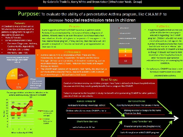 Student Comments: • “I felt it was very relevant to the new generation of nursing - now more than ever” • - “It was simple to conduct our survey of the floor and analyze the process flow” • - “The dashboard survey was not too time-consuming and kept things nice and concise” “wanted more space to report on our findings” • Understand important but want more OB/Pedi content • Limited clinical time could not see how QI project helped to mastery needed clinical skills • Communication breakdown between instructors in courses • Clinical faculty not on board with assignment