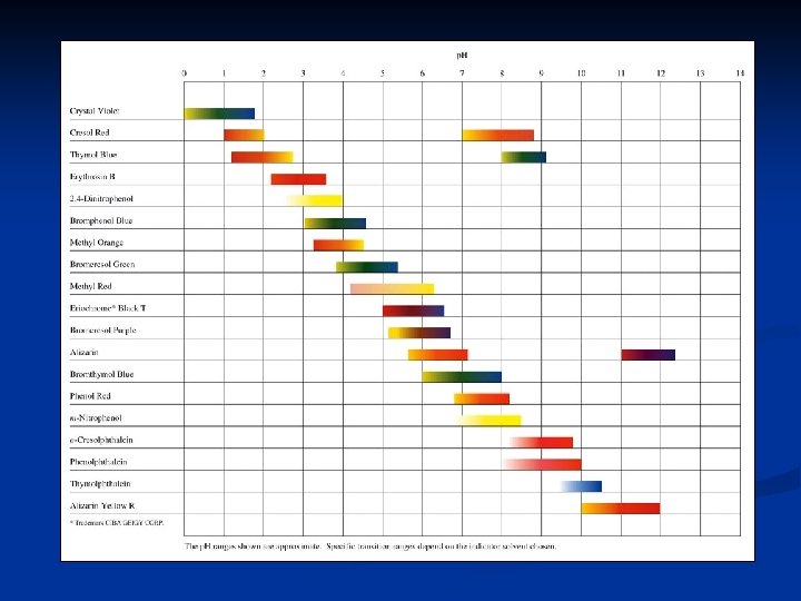 Titrations Not all titrations reach the equivalence point at a p. H of 7. The nature of the acid and base (weak or strong) will influence the p. H at the equivalence point. As a result, indicators much be carefully chosen to change color at the desired p. H.