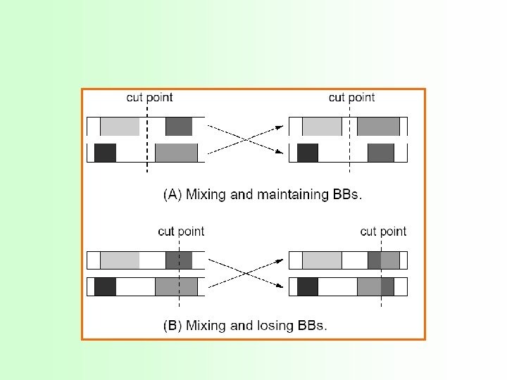 Building Block Hypothesis BBs are sampled, recombined, form higher fitness individual. “construct better individual from the best partial solution of past samples. ” Goldberg 1989