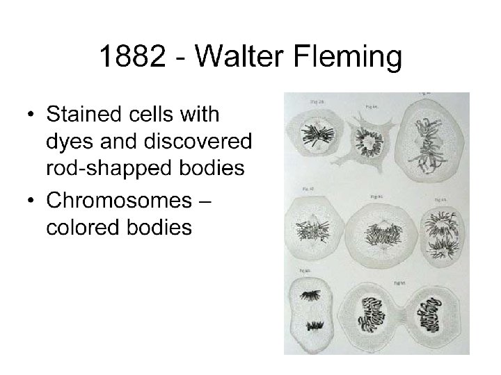 Later Concepts • 1900 - Not until 34 years after its publication did Mendel’s work receive additional attention, with publications in 1900 by three Botanists: Hugo de Vries, Carl Correns, and Erich von Tsernak; • 1902 - Walter Sutton first integrated the concepts of chromosomes with Mendel’s laws, in studies of grasshopper reproduction and cell division and concluded that Mendel’s heritable factors must be on the chromosomes. • 1907 – T. H. Morgan began his work with fruit flies, ultimately mapping gene locations.